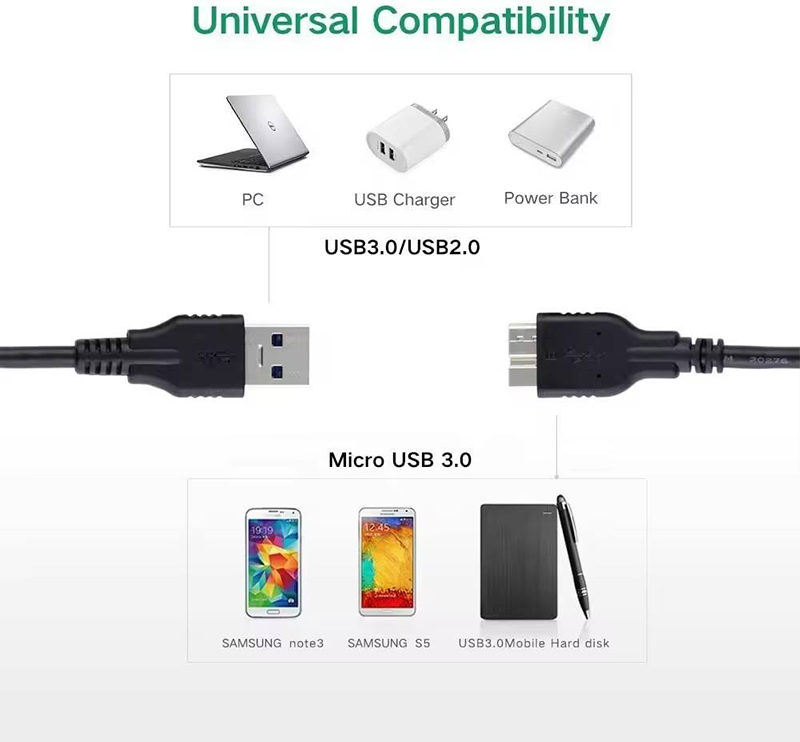 This is the latest USB 3.0 data cable. All conductors are made of high-quality oxygen-free copper, featuring a full metal braided shielding layer and an anti-interference ferrite core, perfectly shielding against various external interferences and ensuring true USB 3.0 transmission speeds.