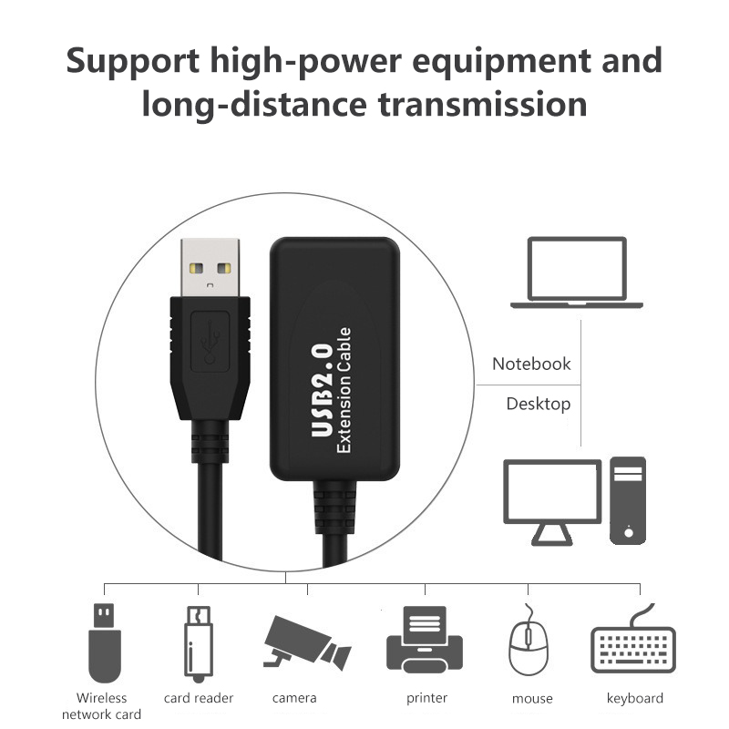 Black 20m usb2.0 extension cable male to female with 2 IC